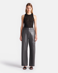The Abrah pants are our take on classic cargo styles. Expertly crafted from regenerated leather, they have a relaxed barrel-leg shape punctuated by a snap-fastening pocket. The midnight-green hue is elegant and refined. Fit Standard fit, matches usual sizing. Model is 175 cm (5'9'') and wears a size S Materials and Care Shell: Base: 100% Polyester Coating: Polyurethane Back: Bonded Leather Middle: 80% Polyester 20% Polyamide Do not wash, do not bleach, do not tumble dry, do not iron, dry clean any solvent except trichloroethylene handle with care to ensure garment lifespan. repair or resell to support circular fashion.