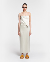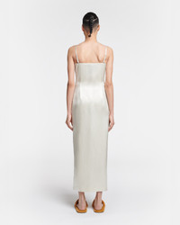 The Briar dress is our signature take on classic 90s slip styles. Crafted from lustrous crinkled satin, it is designed to look like a separate top and wrap midi skirt, it has thin spaghetti straps and a ruched wrap waist. The crinkled-satin construction ensures it hangs beautifully. Fit Regular fit, true to size. Maxi dress Crinkled satin material gives a slight textured look to the garment Adjustable spaghetti straps Ruched detailing on the front Concealed zip fastening on the side Model is 175 cm (5'9'') and wears a size S. Materials and Care Shell: 100% Acetate. Naia™ is a cellulosic fiber made from sustainably sourced wood pulp. It’s produced in a safe, closed-loop process where solvents are recycled back into the system for reuse. Machine wash warm (30°), do not bleach, do not tumble dry, iron low heat (110°), gentle dry clean any solvent except trichloroethylene . handle with care and wash less to ensure garment lifespan. repair or resell to support circular fashion.