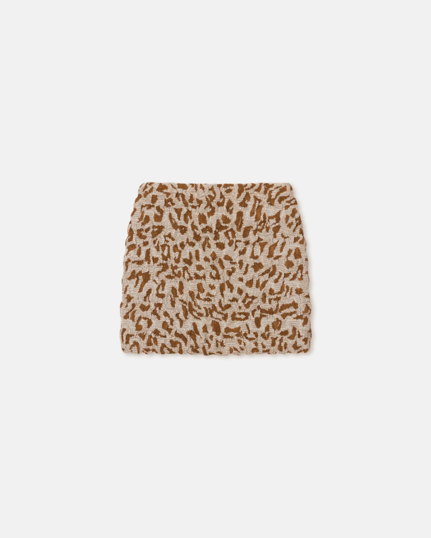 The Lyle skirt debuts a new, textured fabrication – a lightweight seersucker cotton voile decorated with an ocelot print. It sits low on the waist and falls to a mid-thigh length. Fit Tailored to be fitting against the body. Materials and Care Shell: 100% Cotton Machine wash warm (30°) permanent press, do not bleach, do not tumble dry, iron low heat (110°), do not dry clean, dry flat, do not wring. Handle with care and wash less to ensure garment lifespan. Repair or resell to support circular fashion.