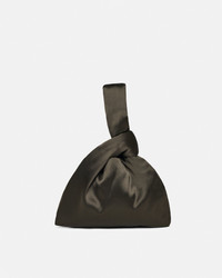 We continually look to update our hero pieces through material innovation and manipulation. This version of our Jen bag is crafted from satin in a dark-green tone. With a slouchy triangular shape and looped wrist-strap, it is perfectly sized for evening essentials. Height: 23 (42)cm Width at base: 33cm Materials and Care Shell: 74% Acetate 26% Polyester Do not wash, do not bleach, do not tumble dry, do not iron, do not dry clean Handle with care to ensure garment lifespan. Repair or resell to support circular fashion.