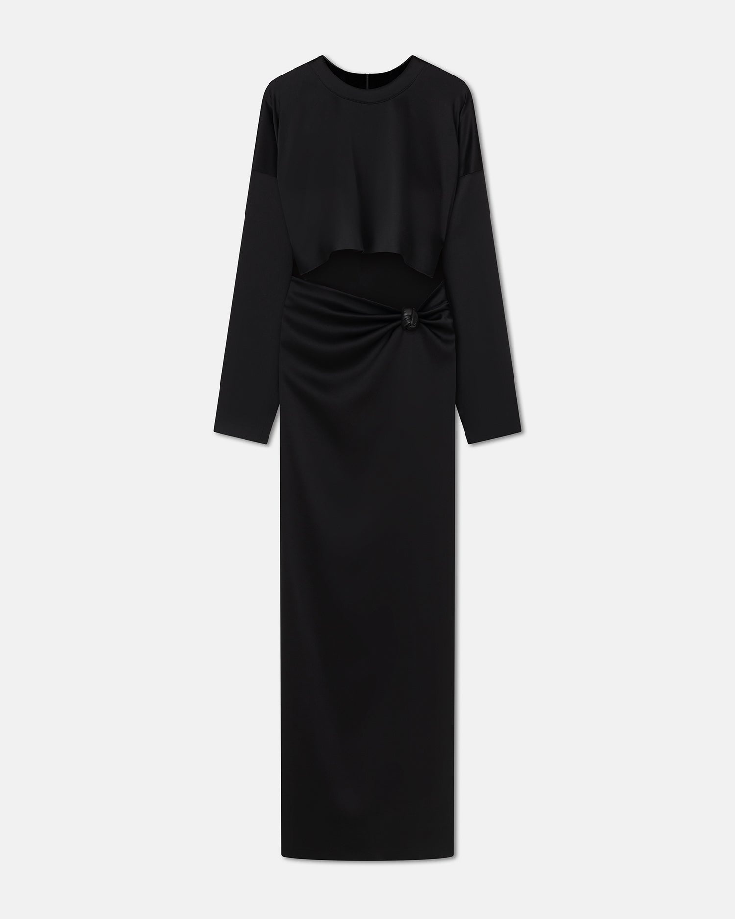 We re-rooted elements of our design history for the new season. The Beatriz dress features some of our key brand signifiers, from the signature slip satin construction to the flattering cut out and knotted waist. Full-length dress Cut out in the middle Knotted detail Long sleeved Crew neck Slit on the back Concealed zip closure Model is 175 cm (5'9'') and wears a size S. Materials and Care Shell: 81% Acetate 19% Polyester Machine wash warm (30°), do not bleach, do not tumble dry, iron low heat (110°), gentle dry clean any solvent except trichloroethylene, handle with care and wash less to ensure garment lifespan. repair or resell to support circular fashion.