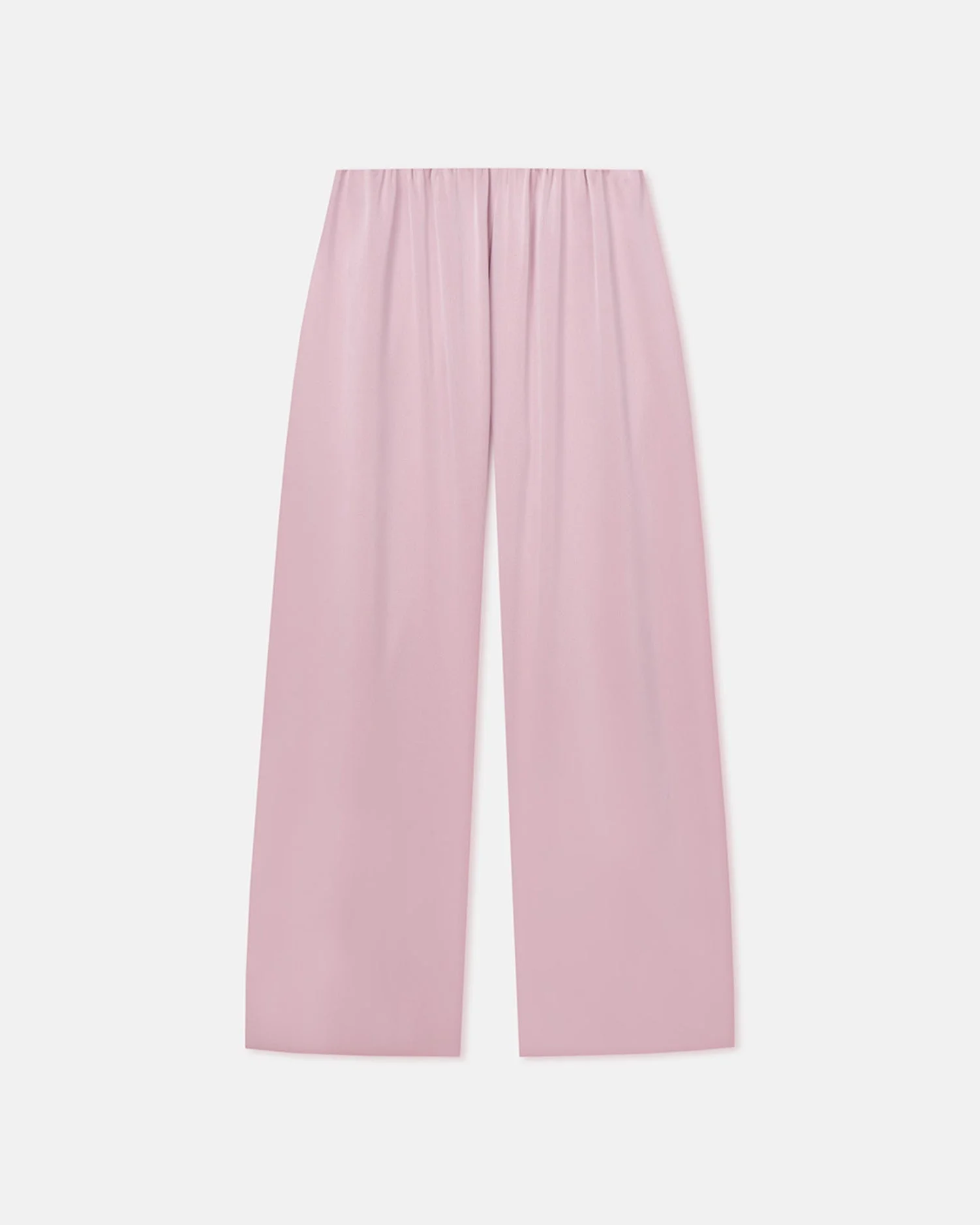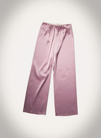 Carefully chosen materials with low-impact credentials are a Nanushka signature. The Brenda pants are made from upcycled slip satin in a soft dusty-pink tone. They are easy to wear thanks to the elasticated waist and relaxed legs. Nanushka introduces RECRAFTED - a capsule reimagining the lifecycle of the Nanushka garment. With a commitment to responsible consumption, the capsule transforms surplus materials into new, elevated pieces, breathing fresh life into archive designs. Fit Standard fit, matches usual sizing Materials and Care Shell: 78% Triacetate 22% Polyester Machine wash warm (30°), do not bleach, do not tumble dry, iron low heat (110°), dry clean any solvent except trichloroethylene, do not wring Handle with care and wash less to ensure garment lifespan. Repair or resell to support circular fashion.