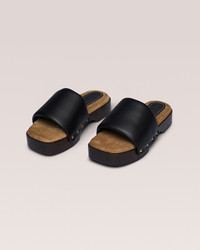 The Stefflon sandal is constructed from soft suede and smooth leather, with chunky hardware to lend the classic silhouette a tough edge. A platform sole adds height. Upper: 100% Leather Lining: 100% Leather Outsole: 100% Wood