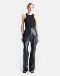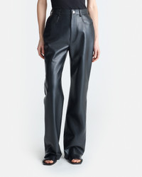 A true investment piece. The Camma trousers feature our responsible regenerated leather in black with a straight leg cut and classic 5-pocket design. Five pockets Regenerated leather Elongated straight leg trousers Materials and Care Shell: Polyurethane Base: 100% Polyester Back: Bonded Leather Middle: 80% Polyester 20% Polyamide Do not wash, do not bleach, do not tumble dry, do not iron, do not dry clean.this product is made from a delicate fabric and has a special finish. to prevent color transfers onto lighter surfaces, please store your item with like colors.
