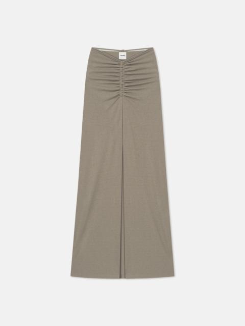 Our Carisa Skirt combines elegance with sculpted precision. Cut from stretch velvet, this elongated pencil skirt embraces the body while allowing for fluid movement. In midnight mocha brown, if provides a versatile, elevated piece that balances sensuality and sophistication with quiet strength. Fit Tailored to be fitting against the body. Model is 175 cm (5'9") and wears a size S. Materials and Care Shell: 94% POLYESTER 6% ELASTANE Machine wash warm (30°), Do not bleach, Do not tumble dry, Iron low heat (110°), Dry clean any solvent except trichloroethylene