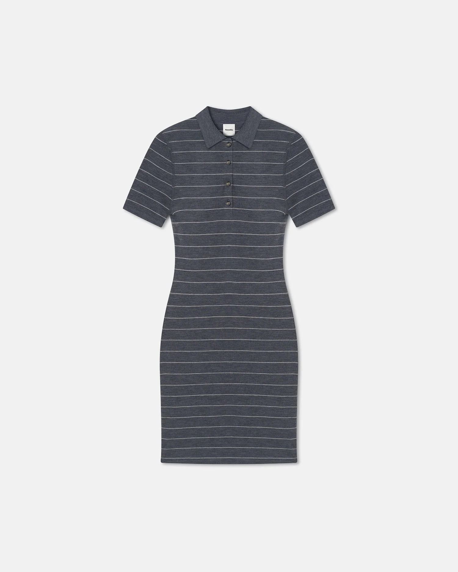 The Safiyah dress takes inspiration from sports aesthetics. Made from super-soft terry merino, it has fine grey stripes and a polo-neck silhouette. Fit Tailored to be fitting against the body. Materials and Care Shell 1: Merino Shell 2: 44% Cotton 53% Polyamide 3% Elastane Hand wash, do not bleach, do not tumble dry, iron low heat (110°), dry clean any solvent except trichloroethylene, dry flat, do not wring Handle with care and wash less to ensure garment lifespan. Repair or resell to support circular fashion.