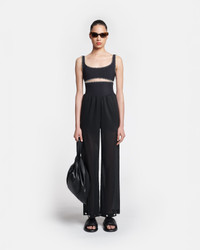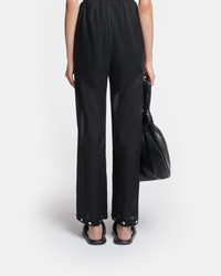 The Brenda pants are all about easy elegance. Crafted from evening-ready organza, they fall from the elasticated waist in relaxed legs – punctuated with silver-tone studs at the hem. Fit Regular fit, true to size. Straight leg trousers Cupro organza material Elasticated waistband Metal studs detailing at the bottom of legs Functional pockets on the sides The cupro organza fabric gives a slight translucent effect to the garment For a complete look it can be paired with the VALLY Model is 175 cm (5'9'') and wears a size S. Materials and Care Shell: 55% Cupro 45% Cotton Trimmings: 100% Zinc Alloy Machine wash warm (30°) permanent press, do not bleach, do not tumble dry, iron low heat (110°), dry clean any solvent except trichloroethylene . handle with care and wash less to ensure garment lifespan. repair or resell to support circular fashion.