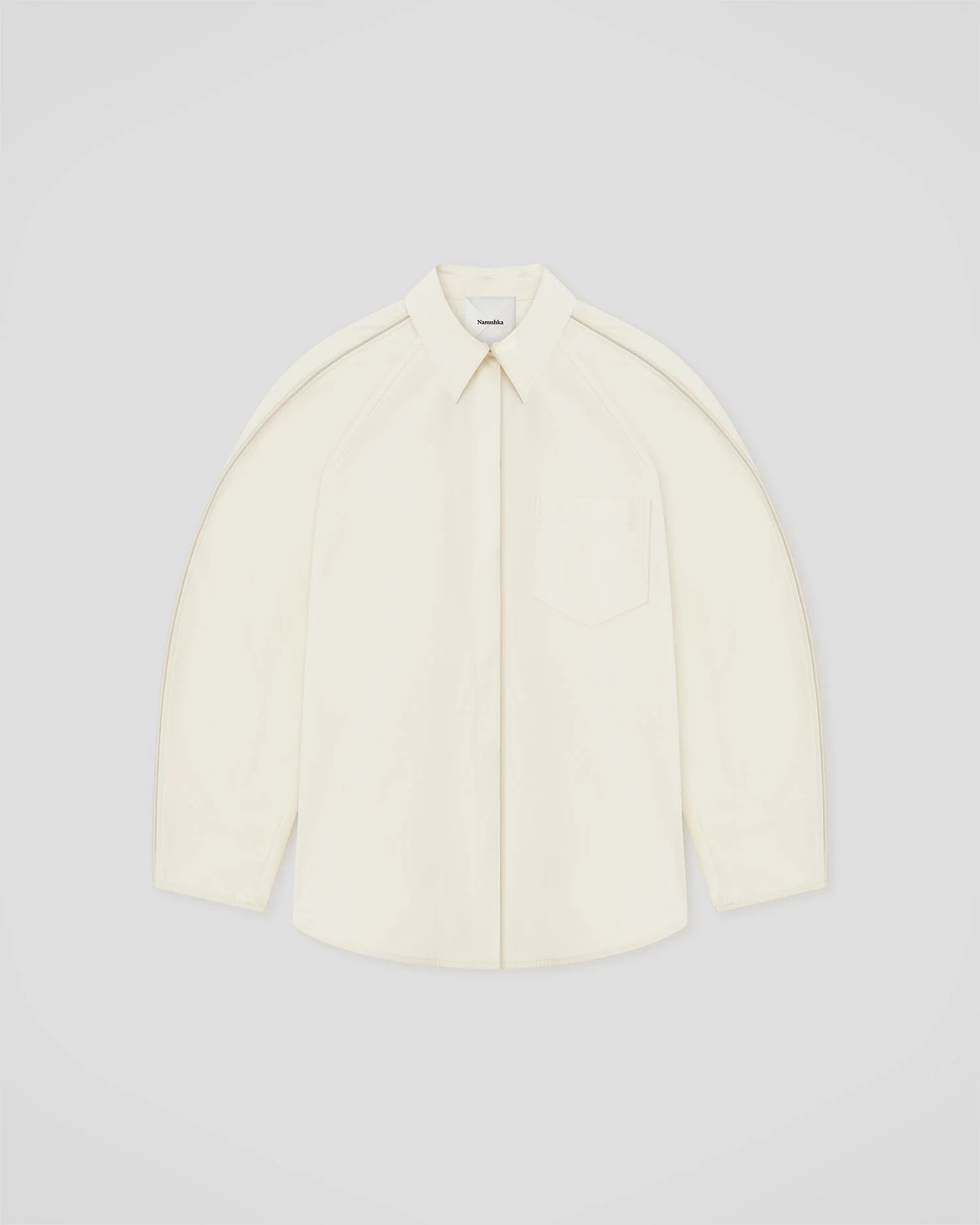 Crafted with a refined, tactile finish, made in Studio cotton, the ARSEMIA Shirt captures the collection’s play of light and texture. in creme Finished with oversized, it moves with ease. Fit Intentionally designed for an oversized look. Model is 175 cm (5'9'') and wears a size S. Materials and Care Shell: 100% COTTON Trimmings: PIPING COATING: 86% TRIACETATE 14% POLYESTER PIPING CORD: 100% POLYESTER Machine wash warm (30°) permanent press, Do not bleach, Do not tumble dry, Iron low heat (110°), Dry clean any solvent except trichloroethylene