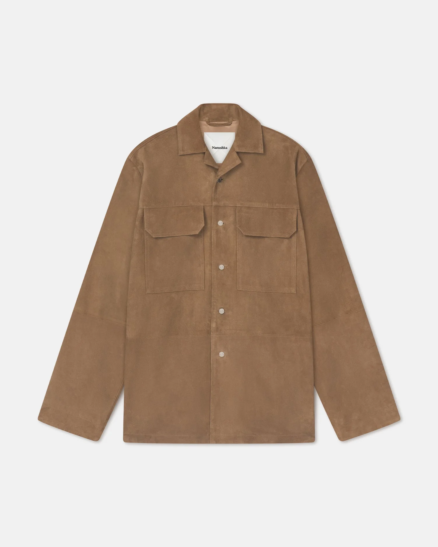 The Kohar Jacket by Nanushka embodies our take on effortless sophistication. Cut from supple brown suede in a relaxed fit, it paires timeless craftsmanship with modern ease. Fit Intentionally designed for an oversized look. Model is 175 cm (5'9'') and wears a size S. Materials and Care Shell: 100% GOAT LEATHER Lining: 100% VISCOSE Do not wash, Do not bleach, Do not tumble dry, Do not iron, Do not dry clean