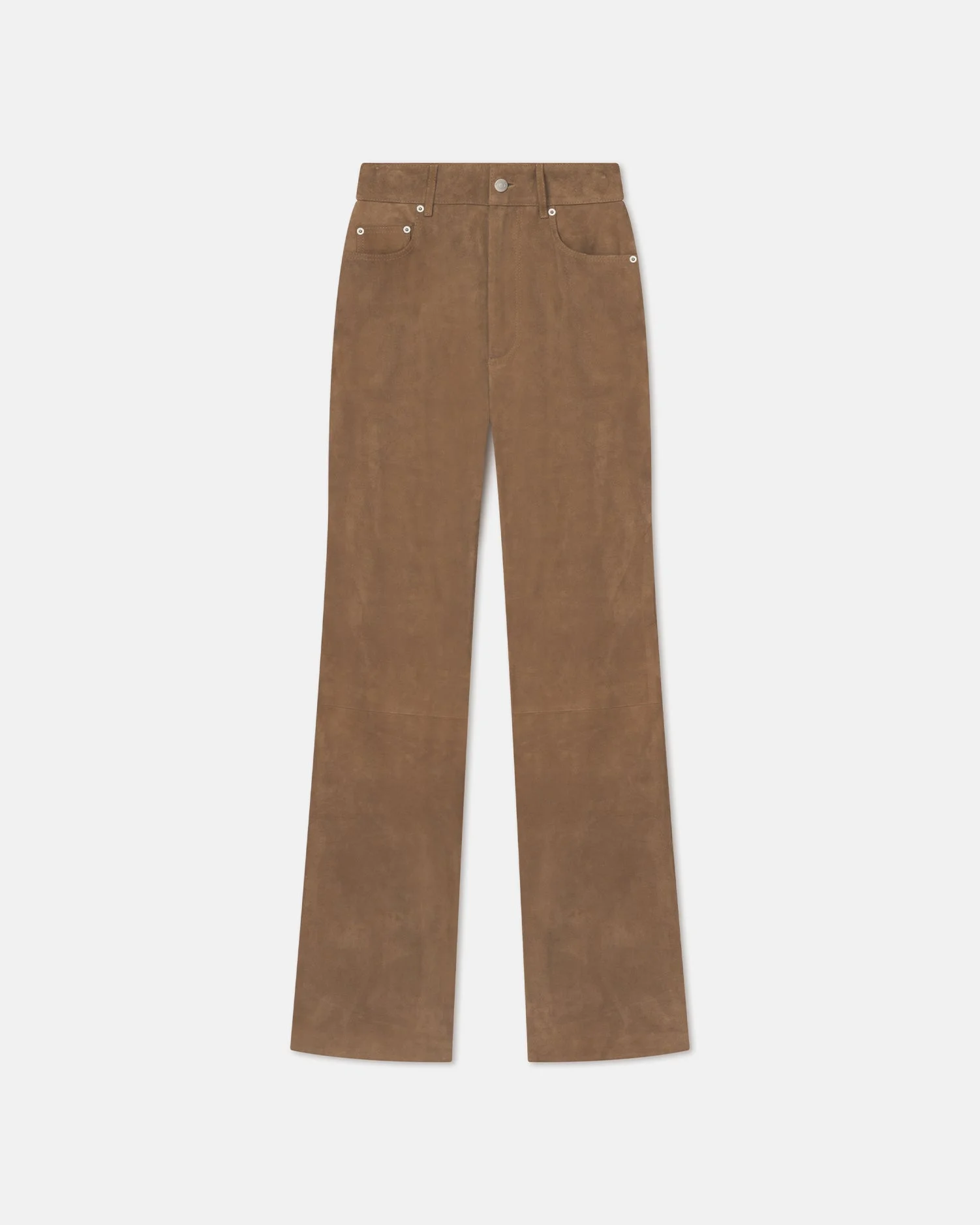 Our Seldes Pants are crafted from a rich brown suede whilst their elongated five-pocket silhouette offers grounded ease while nodding to Fall-Winter 25’s theme of considered evolution, where heritage textures meet fluid tailoring. Fit Standard fit, matches usual sizing Model is 180 cm (5'11'') and wears a size S. Materials and Care Shell: 100% GOAT LEATHER Lining: 100% VISCOSE Hand wash, Do not bleach, Do not tumble dry, Do not iron, Dry clean any solvent except trichloroethylene, Dry flat