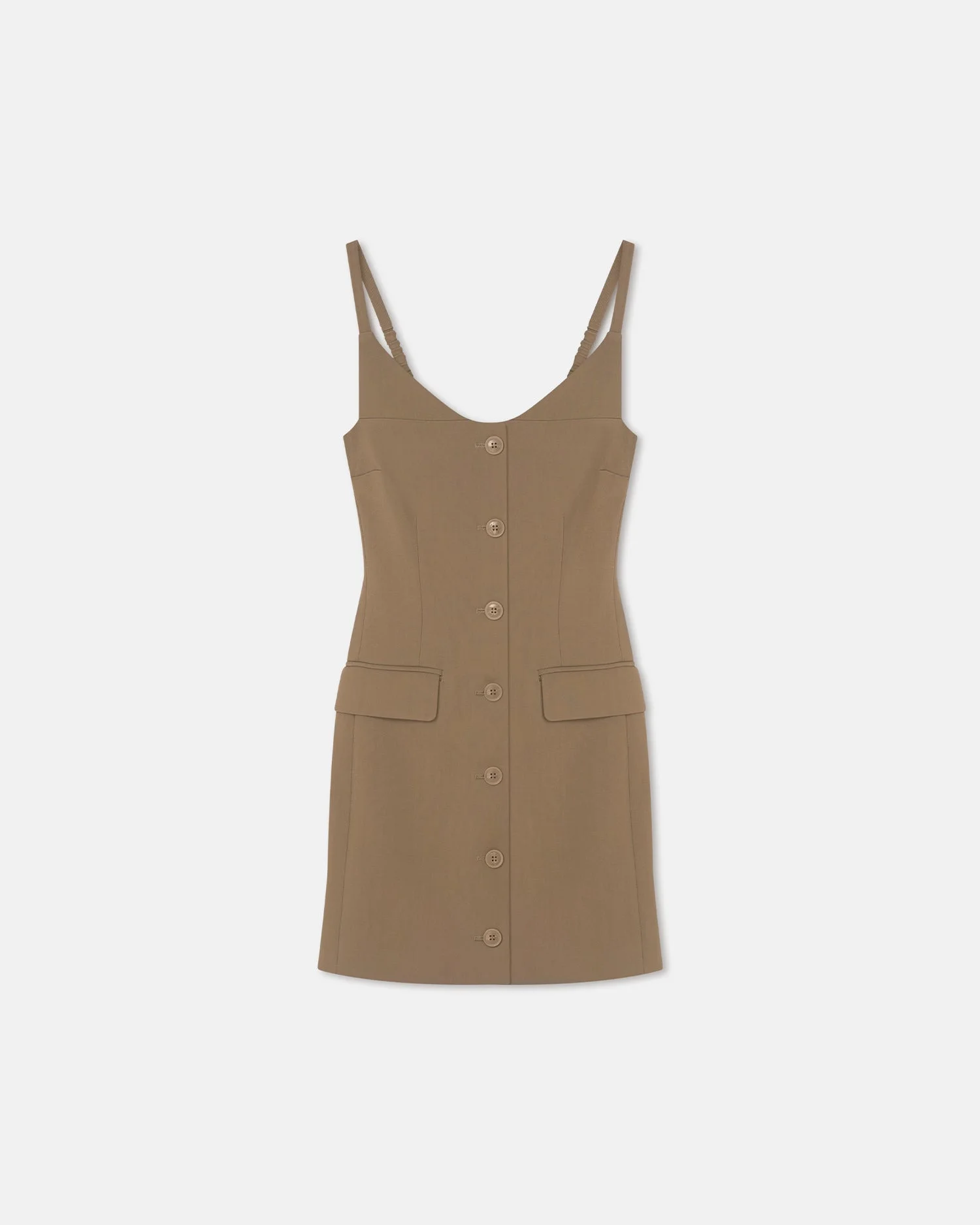 Made from a compact suiting fabric, the Peitho dress encapsulates our fresh, unexpected approach to formal wear. It’s modelled on classic tailoring, with a button front and flap pockets, and turns to reveal an open back. Fit Tailored to be fitting against the body. Materials and Care Shell: 96% Viscose 4% Elastane Lining: 100% Viscose Do not wash, do not bleach, do not tumble dry, iron low heat (110°), gentle dry clean any solvent except trichloroethylene Handle with care to ensure garment lifespan. Repair or resell to support circular fashion.