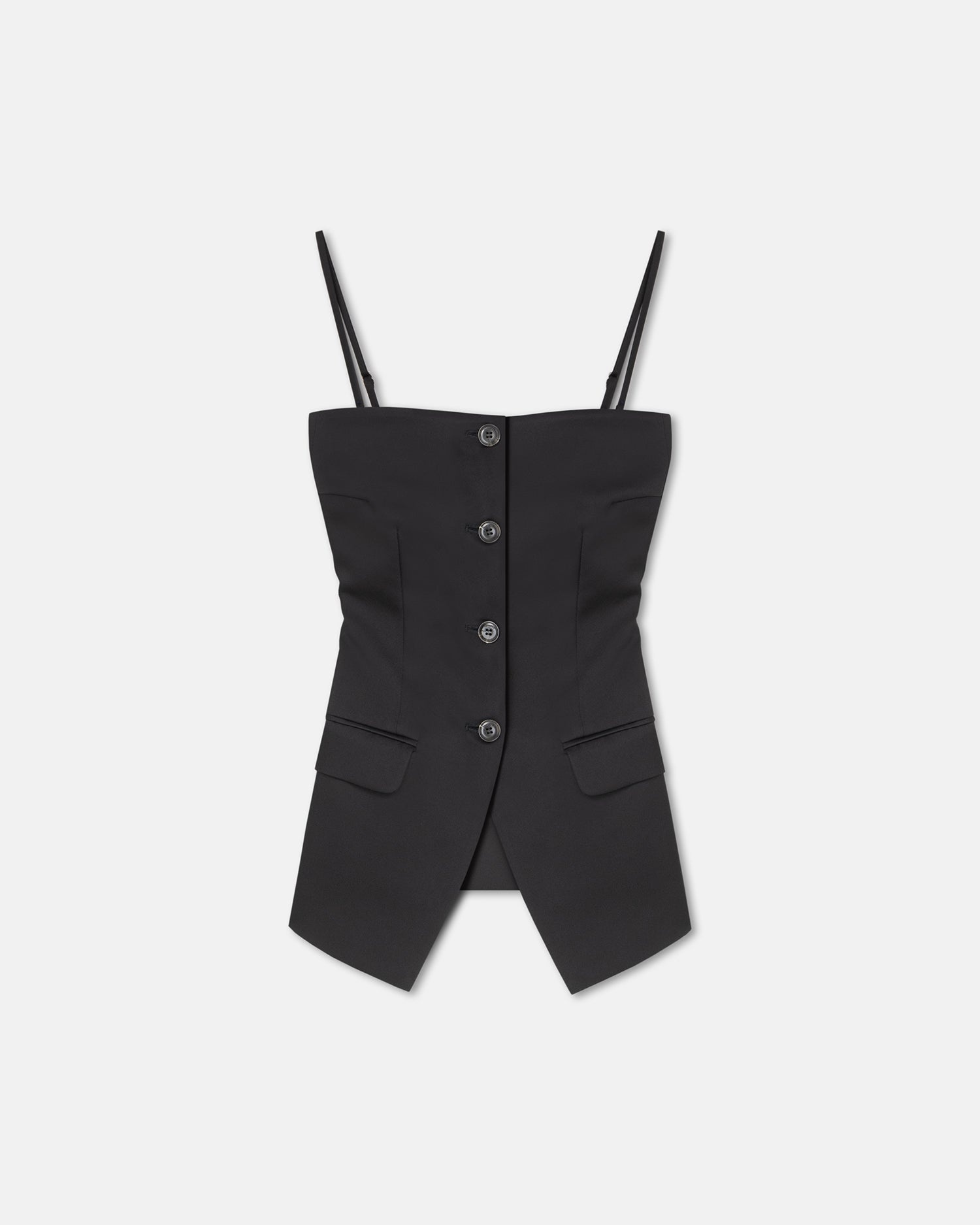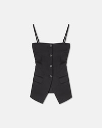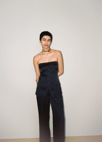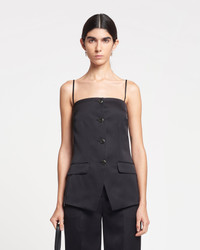 The Alessa vest is an exploration of the structural qualities of fabric. It is unexpectedly tailored from tech satin for a utilitarian feel, but feels clean and sharp thanks to the darted bodice and flap pockets. Fit Designed to fit sleekly against the body. Sleeveless tailored vest Tech satin material Button closure Flap pockets Removable spaghetti straps Slit on the back Model is 177 cm (5'9") and wears a size S. Materials and Care Shell: 61% Viscose 39% Triacetate Lining: 100% Viscose Machine wash warm (30°), do not bleach, do not tumble dry, iron low heat (110°), dry clean any solvent except trichloroethylene, handle with care and wash less to ensure garment lifespan. repair or resell to support circular fashion.