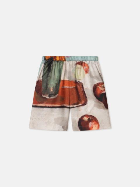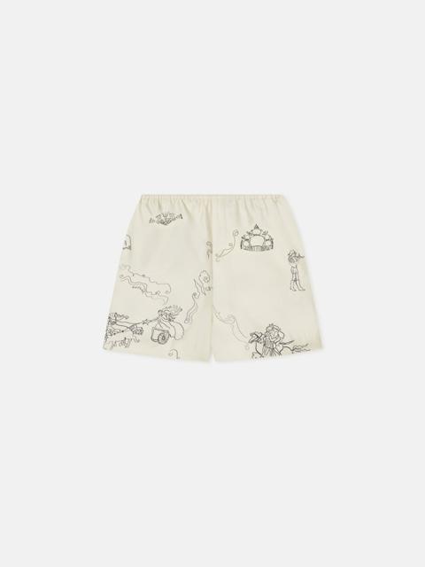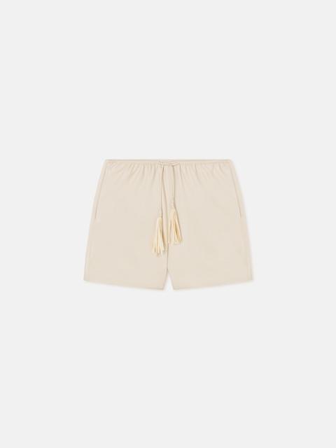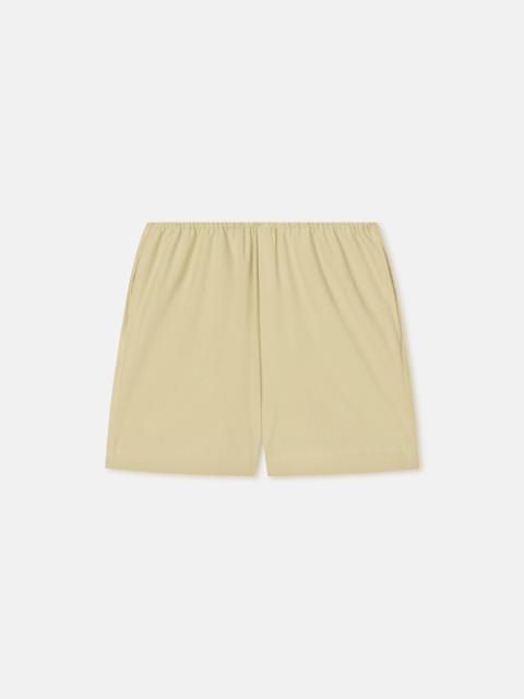 The Dylla shorts are crafted from sage washed calico that has been upcycled from our deadstock fabric library. Lightweight and utilitarian-inspired, they sit high on the waist with drawstring ties for flexibility. Nanushka introduces RECRAFTED - a capsule reimagining the lifecycle of the Nanushka garment. With a commitment to responsible consumption, the capsule transforms surplus materials into new, elevated pieces, breathing fresh life into archive designs. Fit Standard fit, matches usual sizing Materials and Care Shell: 100% Cotton Machine wash warm (30°) permanent press, do not bleach, do not tumble dry, iron low heat (110°), do not dry clean Handle with care and wash less to ensure garment lifespan. Repair or resell to support circular fashion.