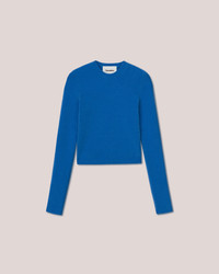 Our tactile compact boucle fabric offers a modern update to the classic crew neck. The Tama sweater is slim fit for a streamlined finish with long sleeves in an eye-catching shade of blue. Body: 65% MERINO WOOL 33% POLYAMIDE 2% ELASTANE