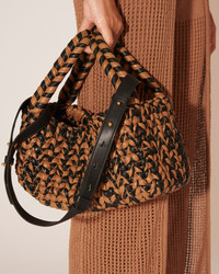 Intricately woven from upcycled vegan leather and melange knit, the Busket bag is a celebration of conscious creativity and pure design. It features two broad handles and a strap to allow hand-free carrying, combining functionality with a modern, versatile silhouette. Body: 65% Polyester, 35% Polyurethane; Body: 60% Polyurethane; 40% Polyester; Hardware 100% Brass TECHNICAL INFORMATION Height: 12 cm Width (at base) 21 cm Width (at top) 21 cm Depth: 10.5 cm Handle Drop: 12 cm Shoulder strap drop: 39 cm Made in Italy