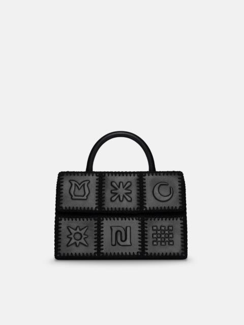 The Sandi Symbol is a classic rectangular silhouette, accented with signature Nanushka detailing. It’s embossed with Nanushka’s iconic Kopjafa symbols on the panels sewn together with handmade crochet detailing. Materials and Care Shell1: Coating: Polyurethane, Base: 100% Polyester, Shell2: 100% Cotton, Lining: 50% Polyamide 50% Polyurethane, Hardware: 100% Zamak Due To The Delicate Nature Of This Product, Please Avoid Strong Solvents When Cleaning And Abrasive Surfaces As This Will Cause Damage. Do Not Wash. Do Not Bleach. Do Not Tumble Dry. Do Not Iron. Do Not Dry Clean. Handle with care to ensure bag lifespan. Repair or resell to support circular fashion.
