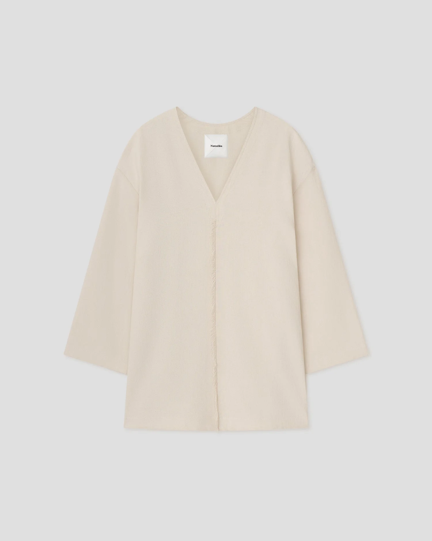 The Isabelle dress explores simplicity through a fluid linen viscose construction. Cut to an oversized mini silhouette, it features a deep V neckline and clean, elongated lines that give it the ease of a tunic. In creme, it feels relaxed yet considered. Fit Intentionally designed for an oversized look. Materials and Care Shell: 67% LINEN 33% VISCOSE Hand wash, Do not bleach, Do not tumble dry, Iron low heat (110°), Dry clean any solvent except trichloroethylene