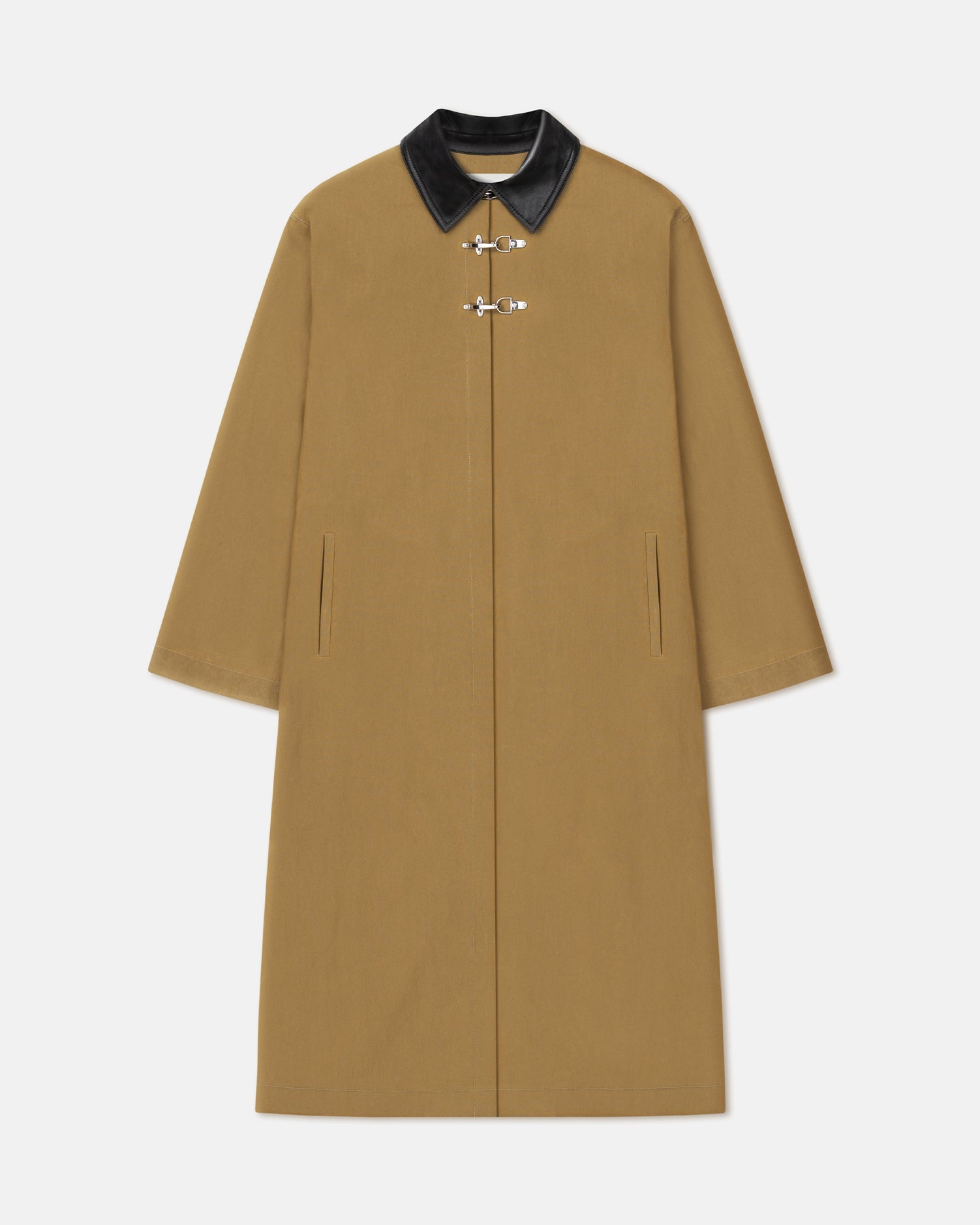 Made from hard-wearing wax cotton, the Zofia coat is modelled on classic workwear styles. The voluminous silhouette is distinguished by a contrasting regenerated leather collar and silver hardware for contemporary energy. Fit Intentionally designed for an oversized look. Model is 175 cm (5'9") and wears size S. Materials and Care Shell: 52% Nylon 48% Cotton Hand wash, do not bleach, do not tumble dry, iron low heat (110°), do not dry clean, do not wring. Handle with care and wash less to ensure garment lifespan. Repair or resell to support circular fashion.