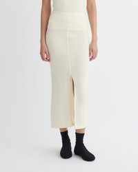 The Rafa skirt has a 90s minimalist feel. Made from jersey with a touch of wool for softness, it sits low on the waist with a front slit. Fit Tailored to be fitting against the body. Materials and Care Shell: 100% Wool Hand wash cold, do not bleach, do not tumble dry, iron low heat (110°), do not dry clean, do not wring, dry flat Handle with care and wash less to ensure garment lifespan. Repair or resell to support circular fashion.