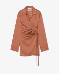 We constantly explore an intuitive juxtaposition of traditional techniques and contemporary silhouettes. The Xaviera dress is intricately draped for a wrap-effect look. Cut from brown-terra slip satin, it has a collar, button fastenings and chest pocket. Shell 81% ACETATE, Shell 19% POLYESTER RECYCLED