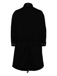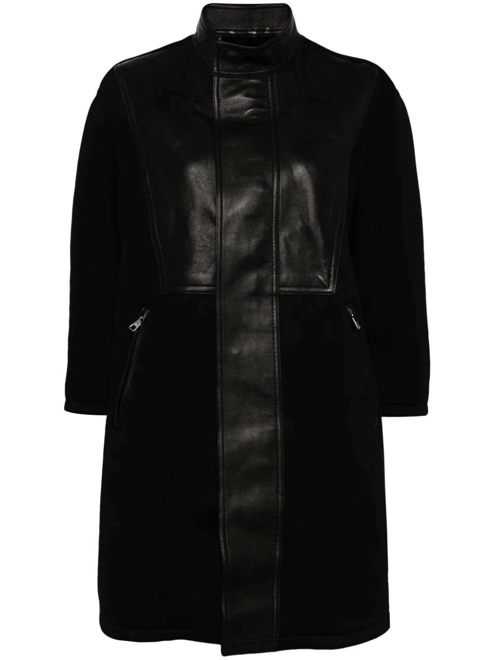 faux leather-trimmed coat Highlights - Black - Faux-leather trim - High neck - Front press-stud and zip fastening - Three-quarter length sleeves - Press-stud fastening cuffs - Two side zip-fastening pockets - Straight hem Made in Italy Composition Lining: Viscose 55%, Polyester 45% Outer: Viscose 100%