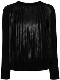 fringed long-sleeve sweatshirt Highlights - Black - Fringe detailing - Faux-leather trim - Boat neck - Long sleeves - Straight hem Made in Italy Composition Filling: Polyurethane 100% Inner: Cotton 100% Body: Viscose 100%