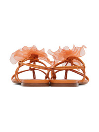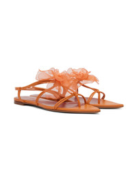 Buffed leather flat sandals in orange. Graphic applique, criss-crossing straps, and thong-style strap at vamp. · Pointed toe · Logo embossed at padded leather footbed · Leather sole with rubber injection Supplier color: Orange Upper: leather. Sole: leather. Made in Italy 231334F124008