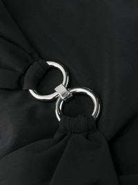 ring-embellished cut-out swimsuit Graphic cut-outs and silver-tone hardware elevate the simple silhouette of this black Nensi Dojaka swimsuit. It's crafted with slender shoulder straps and fitted with self-tie straps at the open back. Highlights - Black - Stretch-design - Ring hardware detailing - Spaghetti straps - Rear tie fastening - Be mindful to try on swimwear over your own garments. Made in Italy Composition Polyester 72%, Spandex/Elastane 28% Washing instructions Dry Clean Only