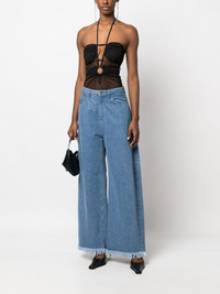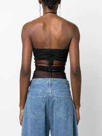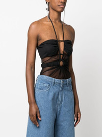 sheer-panel halterneck bodysuit Sheer detailing is a key element in Nensi Dojaka's daring design aesthetic. This black bodysuit features rounded cut-outs as well as transparent inserts around the panelled bust. Highlights - Black - Stretch-design - Sheer panelling - Cut-out detailing - Halterneck - Spaghetti straps - Just a reminder that this piece must be tried on over your own garments. Made in Italy Composition Viscose 84%, Spandex/Elastane 16% SIZE & FIT Model measurements Height 5 ft 10 in(1.77 m) Bust/Chest 29.92 in(76 cm) Hips 34.25 in(87 cm) Waist 23.62 in(60 cm) FittingInformation Designed for a close fit throughout Made from a lightweight stretch fabric, this piece offers elasticity and flexibility when worn This piece fits true to size – take your usual size Washing instructions Do Not Wash/Do Not Dry Clean