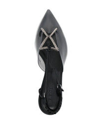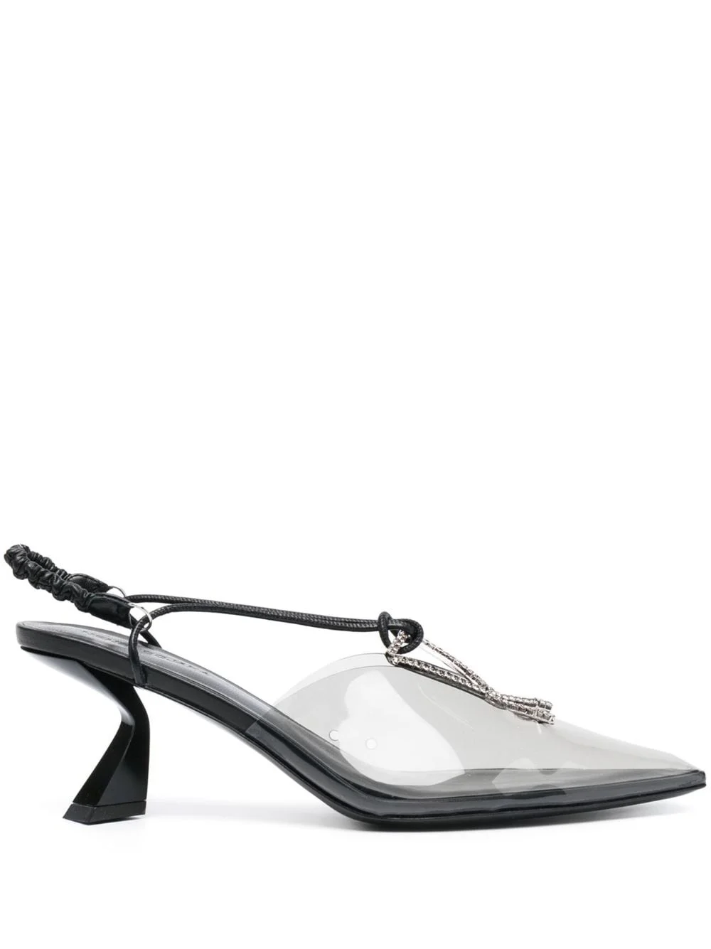 70mm crystal-embellished pumps Futuristic designs define Nensi Dojaka's aesthetic, as the label attempts to create a bold wardrobe for a modern sensibility. Crafted with a transparent PVC vamp to create a trompe l'oeil effect, this pair is finished with a crystal embellishment for a hint of sparkle. Highlights - Black - Calf leather - Translucent design - Crystal embellishment - Elasticated slingback strap - Pointed toe - Sculpted heel - Branded insole Made in Italy Composition PVC 100%