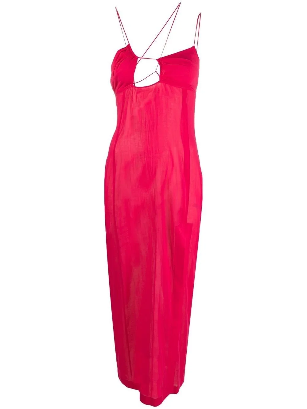 long asymmetric-neck dress fuchsia pink cotton asymmetric neck adjustable spaghetti straps rear hook fastening sleeveless front slit long length Made in Italy Composition Cotton 100% SIZE & FIT Model measurements Height 5 ft 9 in(1.75 m) Bust/Chest 31.1 in(79 cm) Hips 33.46 in(85 cm) Waist 23.22 in(59 cm) Measurement LENGTH 54.72 in(139 cm) WAIST 27.55 in(70 cm) BUST 26.77 in(68 cm) FittingInformation This piece fits true to size. We recommend you get your regular size Designed for a close fit at the bust and waist, but loose at the hip Made with a lightweight fabric Washing instructions Hand Wash