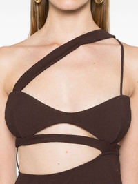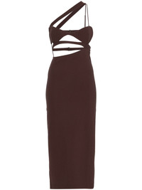 asymmetric midi dress Highlights - Chocolate brown - Silk - Asymmetric design - Rear hook and eye fastening - Concealed rear hook and zip fastening - Sweetheart neck - Sleeveless - Cut-out detailing - Low back - Rear slit - Full lining - Straight hem Made in Italy Composition Silk 100%, Viscose 83%, Polyamide 12%, Elastane 5% SIZE & FIT Model measurements Height 5 ft 9 in(1.75 m) Bust/Chest 31.88 in(81 cm) Hips 34.64 in(88 cm) Waist 24.01 in(61 cm) FittingInformation Designed for a close fit throughout Made from a midweight stretch fabric, this piece offers elasticity and flexibility when worn