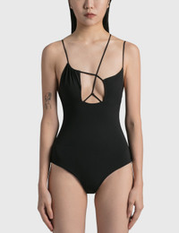 - Nensi Dojaka - Asymmetric Draped Bra Swimsuit - Stretch poly exterior - Pull on design - Asymmetric bra top - Color: Black - Material: 72% Polyester, 28% Elastane - See more Swimwear and Clothing SIZING Approximate measurement: - Torso (Start at one shoulder, run tape through leg and back up to the starting point.) - XS: 124cm, S: 128cm, M: 132cm, L: 136cm - Chest Circumference - XS: 60cm, S: 62cm, M: 66cm, L: 70cm - Waist Circumference - XS: 52cm, S: 54cm, M: 58cm, L: 62cm - Hips Circumference - XS: 64cm, S: 68cm, M: 72cm, L: 76cm - Model wears size XS - Model measures: Height 170cm, Chest 29”/75cm, Waist 22”/57cm, Hip 33”/86cm