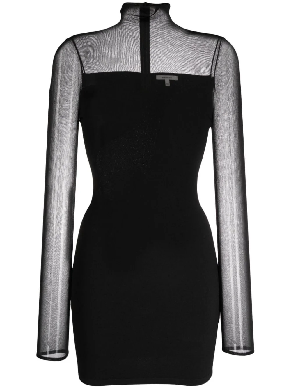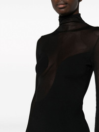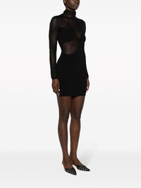 roll-neck semi-sheer-panelled minidress Known for its use of gauzy fabrics, Nensi Dojaka proposes designs underpinned by a celebratory, empowering essence. Take this black minidress as an example. Crafted to a roll-neck silhouette, it boasts asymmetric semi-sheer panels that speak to the brand's signature aesthetic. Highlights - Black - Roll neck - Semi-sheer panels - Long sleeves - Thigh-length - Straight hem Made in Italy Composition Viscose 80%, Polyester 12%, Polyamide 8% SIZE & FIT Model measurements Height 5 ft 10 in(1.77 m) Bust/Chest 32.28 in(82 cm) Hips 35.03 in(89 cm) Waist 25.19 in(64 cm) Measurement HIPS 31.49 in(80 cm) LENGTH 30.7 in(78 cm) WAIST 22.04 in(56 cm) FittingInformation Designed for a slim fit that sits just away from the body offering a close yet comfortable fit Made from a midweight stretch fabric, this piece offers elasticity and flexibility when worn This piece fits true to size – take your usual size