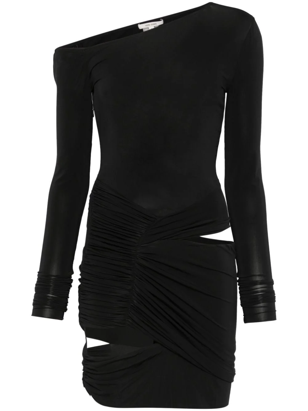 asymmetric-neck mini dress Highlights - Black - Stretch-jersey - Bodycon design - Concealed side zip fastening - Asymmetric neck - Long sleeves - Cut-out detailing - Ruched detailing - Pleat detailing - Gathered detailing - Partial lining - Asymmetric hem - Thigh-length Made in Italy Composition Viscose 92%, Elastane 8% SIZE & FIT Model measurements Height 5 ft 11 in(1.8 m) Bust/Chest 31.49 in(80 cm) Hips 36.61 in(93 cm) Waist 24.4 in(62 cm) FittingInformation Designed for a close fit throughout Made from a midweight stretch fabric, this piece offers elasticity and flexibility when worn