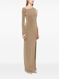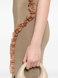 frill-detail asymmetric maxi dress Highlights - Sepia brown - Side slit - One-shoulder - Single long sleeve Made in Italy Composition Polyester 100%, Viscose 92%, Elastane 8% SIZE & FIT Model measurements Height 5 ft 9 in(1.75 m) Bust/Chest 31.88 in(81 cm) Hips 34.64 in(88 cm) Waist 24.01 in(61 cm) FittingInformation Designed for a close fit throughout Made from a lightweight stretch fabric, this piece offers elasticity and flexibility when worn