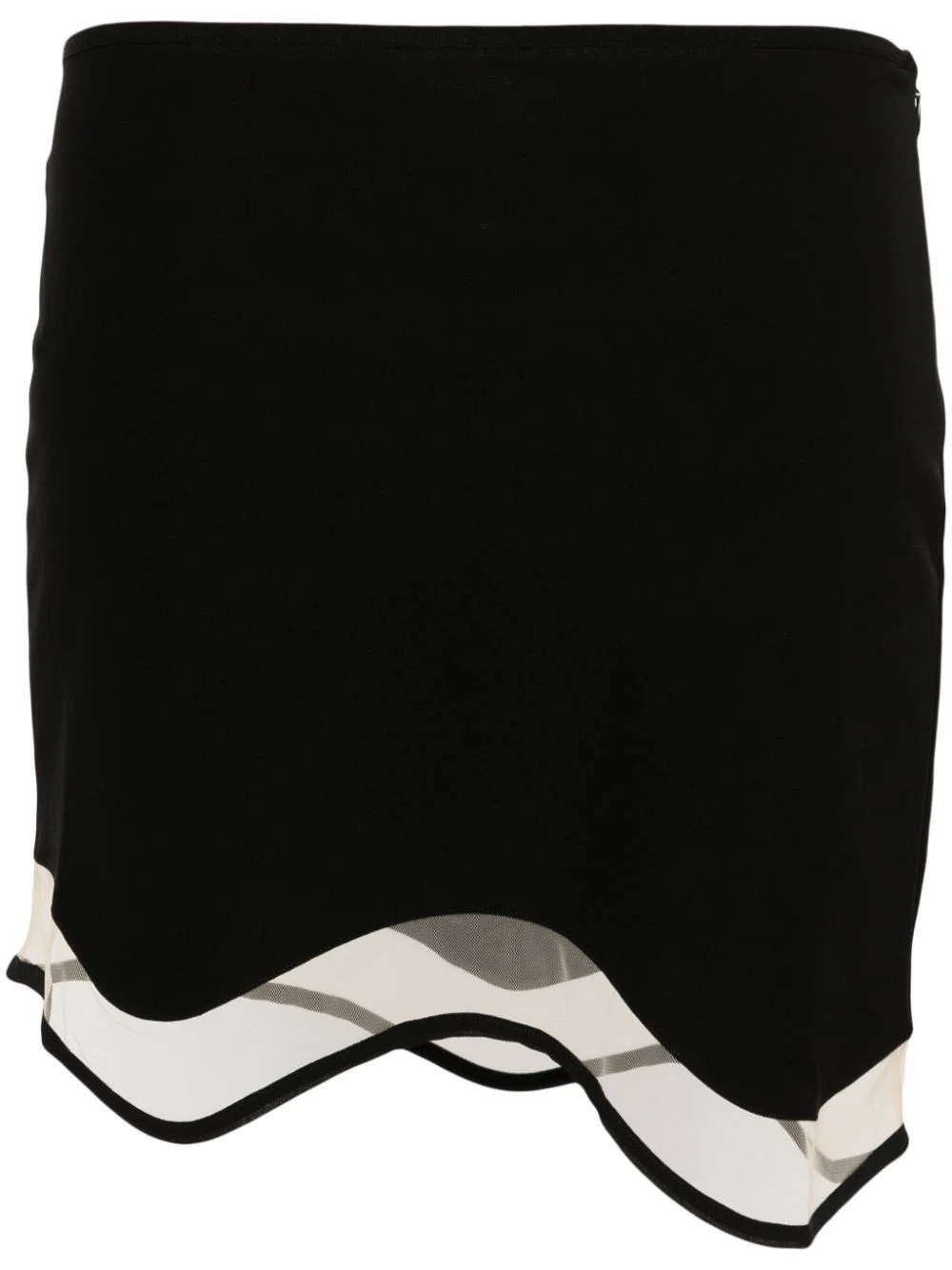 Heartbeat mini skirt Highlights - Black - Stretch-jersey - Mesh panelling - Concealed side hook and zip fastening - Thigh-length - Asymmetric scallop hem - Unlined Made in Italy Composition Viscose 83%, Polyamide 12%, Elastane 5% SIZE & FIT Model measurements Height 5 ft 9 in(1.74 m) Bust/Chest 34.64 in(88 cm) Hips 36.61 in(93 cm) Waist 26.37 in(67 cm) FittingInformation This mini-length skirt is intended to be worn just below the waist Made from a lightweight stretch fabric, this piece offers elasticity and flexibility when worn This piece fits true to size – take your usual size