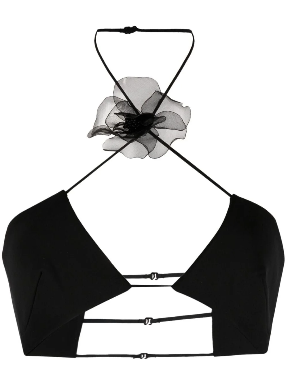 floral-applique halterneck cropped top Nensi Dojaka is known for her lingerie-inspired garments, and this cropped top from shows just that. It's embellished with a floral tulle applique and traced with barely-there straps that create an alluring cutout effect. Highlights - Black - Floral applique - Cut-out detailing - Halterneck - Rear hook fastening - Cropped Made in Italy Composition Polyester 100% SIZE & FIT Model measurements Height 5 ft 10 in(1.78 m) Bust/Chest 29.92 in(76 cm) Hips 34.64 in(88 cm) Waist 23.62 in(60 cm) Washing instructions Dry Clean Only