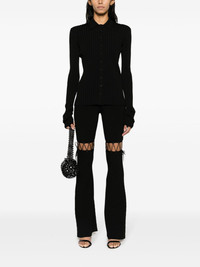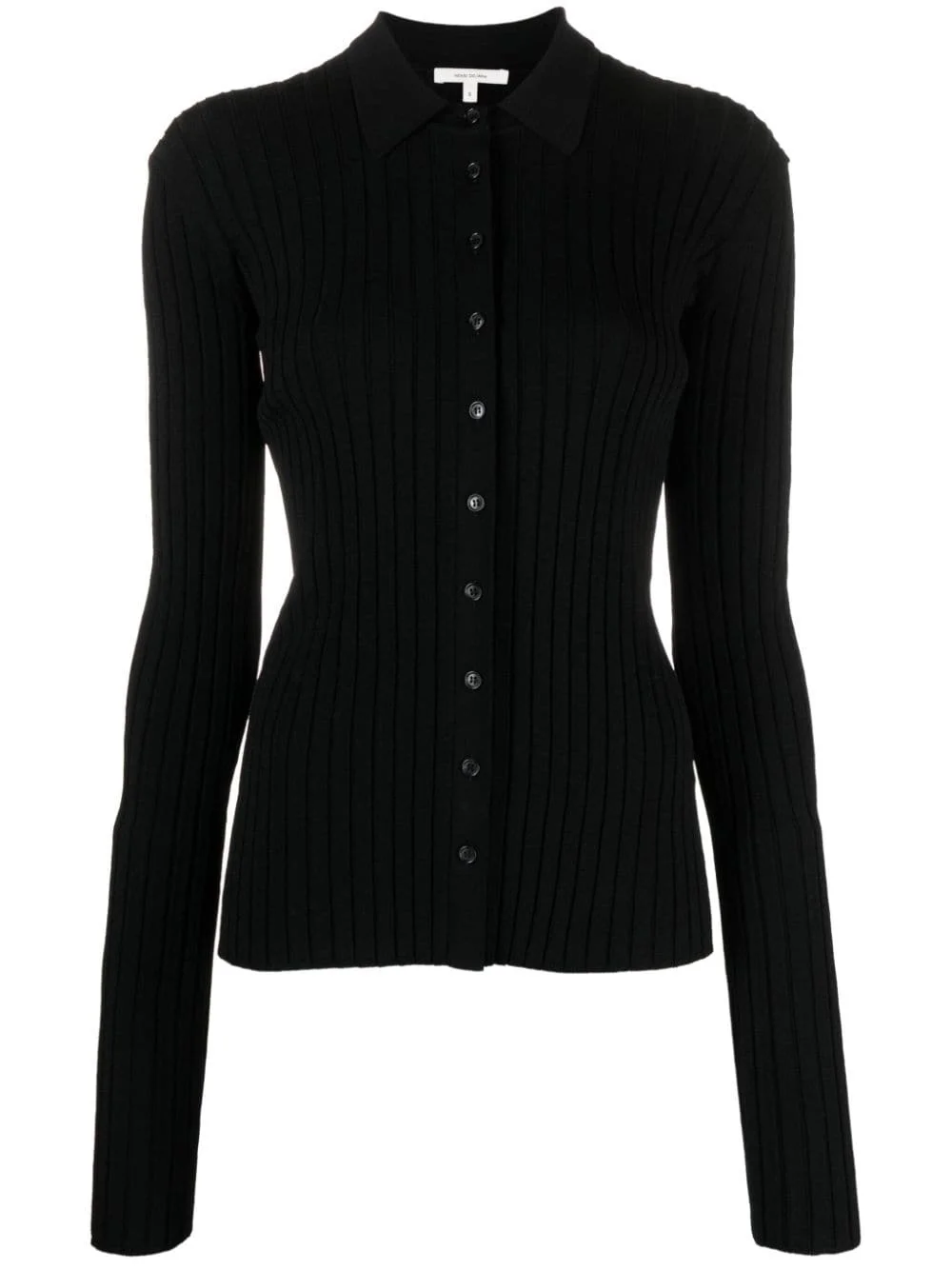 straight-point collar pleated top Finely ribbed in Italy to a silhouette-hugging fit, this black cardigan from Nensi Dojaki is fitted with a pointed collar for a preppy-inspired flair. Highlights - Black - Ribbed knit - Straight-point collar - Front button fastening - Long sleeves - Scallop hem Made in Italy Composition Viscose 83%, Polyester 17% SIZE & FIT Model measurements Height 5 ft 10 in(1.77 m) Bust/Chest 31.1 in(79 cm) Hips 34.64 in(88 cm) Waist 24.8 in(63 cm) FittingInformation Designed for a close fit throughout Made with a midweight knit, this piece offers some stretch This piece fits true to size – take your usual size