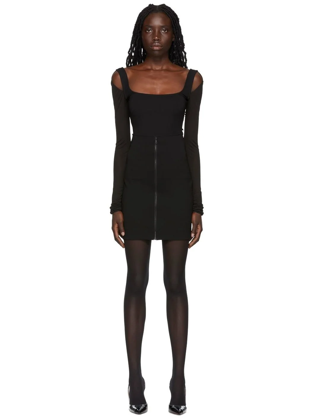 Stretch viscose and nylon-blend Ottoman jersey skirt. · Paneled construction · High-rise · Zip closure · Unlined Supplier color: Black 83% viscose, 12% polyamide, 5% elastane. Made in United Kingdom 221334F090000