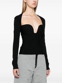 bustier-style top Highlights - Bustier-style neckline - Black - Stretch-design - Bustier-style neckline - Long sleeves - Straight hem - Cropped Made in Italy Composition Viscose 81%, Polyester 16%, Polyamide 3% SIZE & FIT Model measurements Height 5 ft 9 in(1.75 m) Bust/Chest 31.88 in(81 cm) Hips 34.64 in(88 cm) Waist 24.01 in(61 cm) FittingInformation Designed for a close fit throughout The moulded cups offer shape and support Made with a midweight knit, this piece offers some stretch