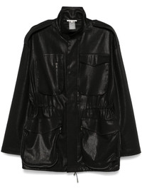 coated jacket Highlights - Black - Cotton blend - Twill weave - Coated finish - Front press-stud and zip fastening - High neck - Chest flap pocket - Zip-fastening chest pocket - Epaulettes - Long sleeves - Two front patch pockets - Two side zip-fastening pockets - Elasticated waistband with internal drawstring - Full lining - Straight hem Made in Italy Composition Body: Cotton 98%, Elastane 2% SIZE & FIT Model measurements Height 5 ft 9 in(1.75 m) Bust/Chest 31.88 in(81 cm) Hips 34.64 in(88 cm) Waist 24.01 in(61 cm) FittingInformation Designed to be unstructured, offering a loose fit throughout The adjustable drawstring means that you can adjust this piece’s fit to suit your comfort and preference Made from a midweight stretch fabric, this piece offers elasticity and flexibility when worn