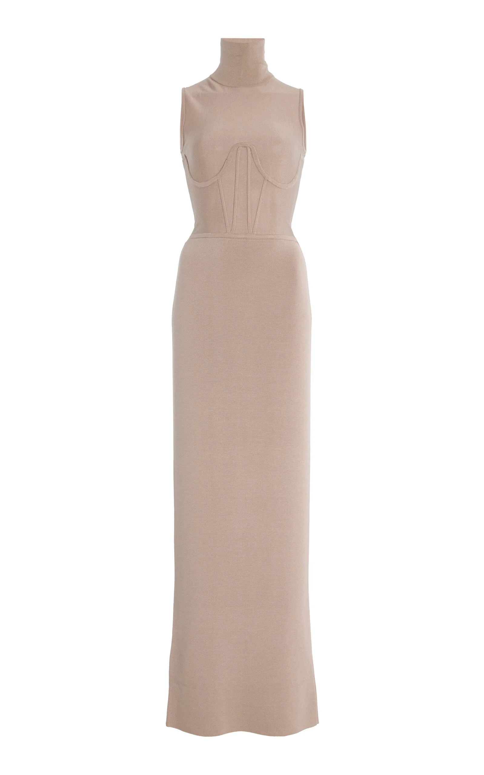 Corseted Roll-Neck Knit Maxi Dress neutral