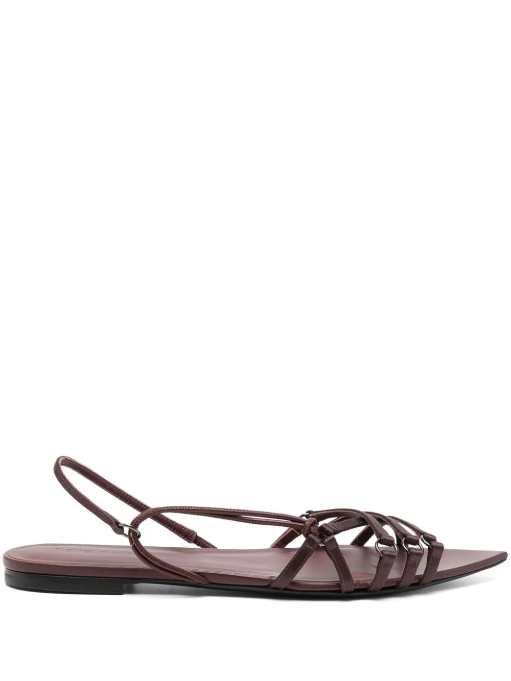 Corset leather sandals Highlights - Brown - Calf leather - Multi-way strap design - Silver-tone hardware - Pointed toe - Branded leather insole - Flat leather sole Made in Italy Composition Sole: Calf Leather 100% Outer: Fabric 100% Lining: Calf Leather 100% SIZE & FIT Measurement HEEL 0.39 in(1 cm) HEIGHT 1.57 in(4 cm)