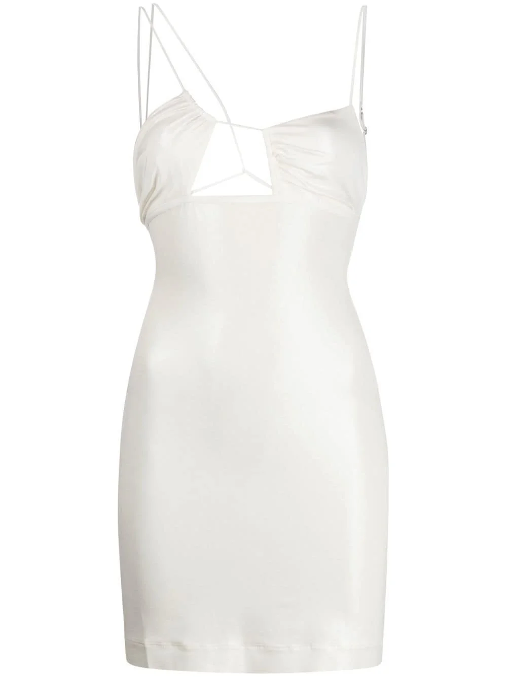 cut-out minidress Nensi Dojaka showcases its signature use of strappy detailing with this minidress, imagined in a glossy white colourway. The garment is finished with cut-outs, contributing to a contemporary feel. Made in Italy Composition Viscose 95%, Elastane 5% SIZE & FIT Model measurements Height 5 ft 10 in(1.79 m) Bust/Chest 31.1 in(79 cm) Hips 35.03 in(89 cm) Waist 24.01 in(61 cm) Measurement HIPS 33.07 in(84 cm) LENGTH 33.07 in(84 cm) WAIST 25.19 in(64 cm) FittingInformation This piece fits true to size. We recommend you get your regular size Cut for a close fit Made with a mid-weight stretch fabric Washing instructions Dry Clean Only