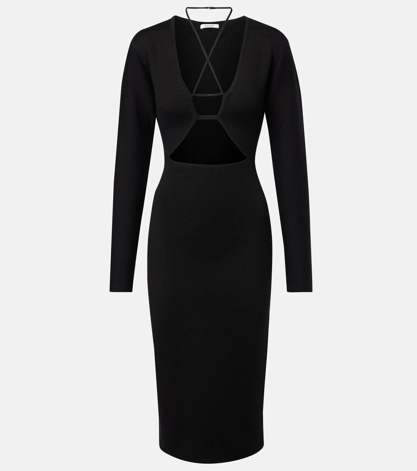 Alluring cutouts and intricate networks of straps have become synonymous with Nensi Dojaka's designs. Knitted from soft virgin wool yarns, this midi dress features geometric cutouts on the front and a lace-up string detail around the neck. Product Details - Material: 100% virgin wool - Care instructions: dry clean - Made in China - Designer color name: Black - Item color: black - Item number: P01096427 Size & Fit - True to size - Fitted - Stretchy fabric - The model seen in the picture is 178cm-5'10" and wearing a size XS