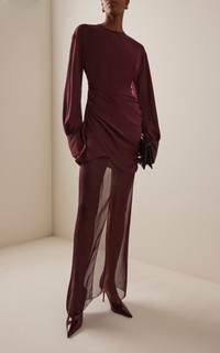 Davina Chiffon-Detailed Draped Crepe Maxi Dress burgundy