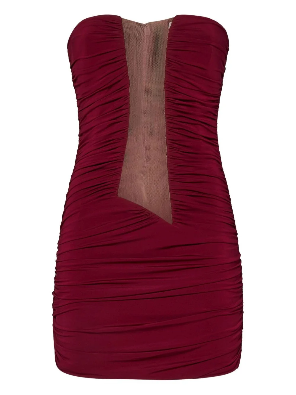 draped mesh-panel mini dress Highlights - Burgundy - Draped detailing - Mesh panel - Strapless neckline - Concealed zip fastening Made in Italy Composition Viscose 92%, Elastane 8% Washing instructions Read Manufacturer Guidelines