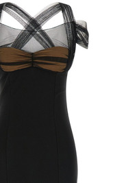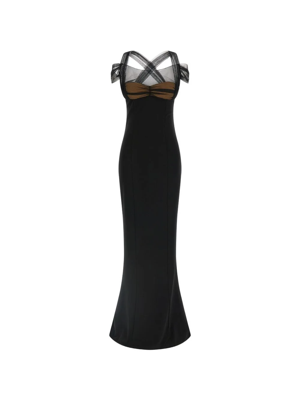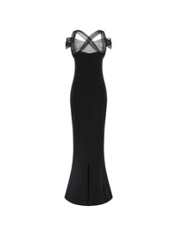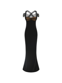 draped tulle maxi dress Highlights - Black - Tulle inserts at the top - Padded cups - Cross back tulle straps - Sleeveless - Back split Imported Composition Viscose 83%, Polyamide 12%, Spandex/Elastane 5% Washing instructions Read Manufacturer Guidelines