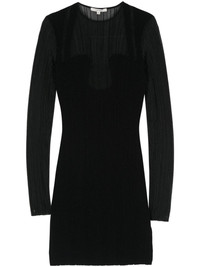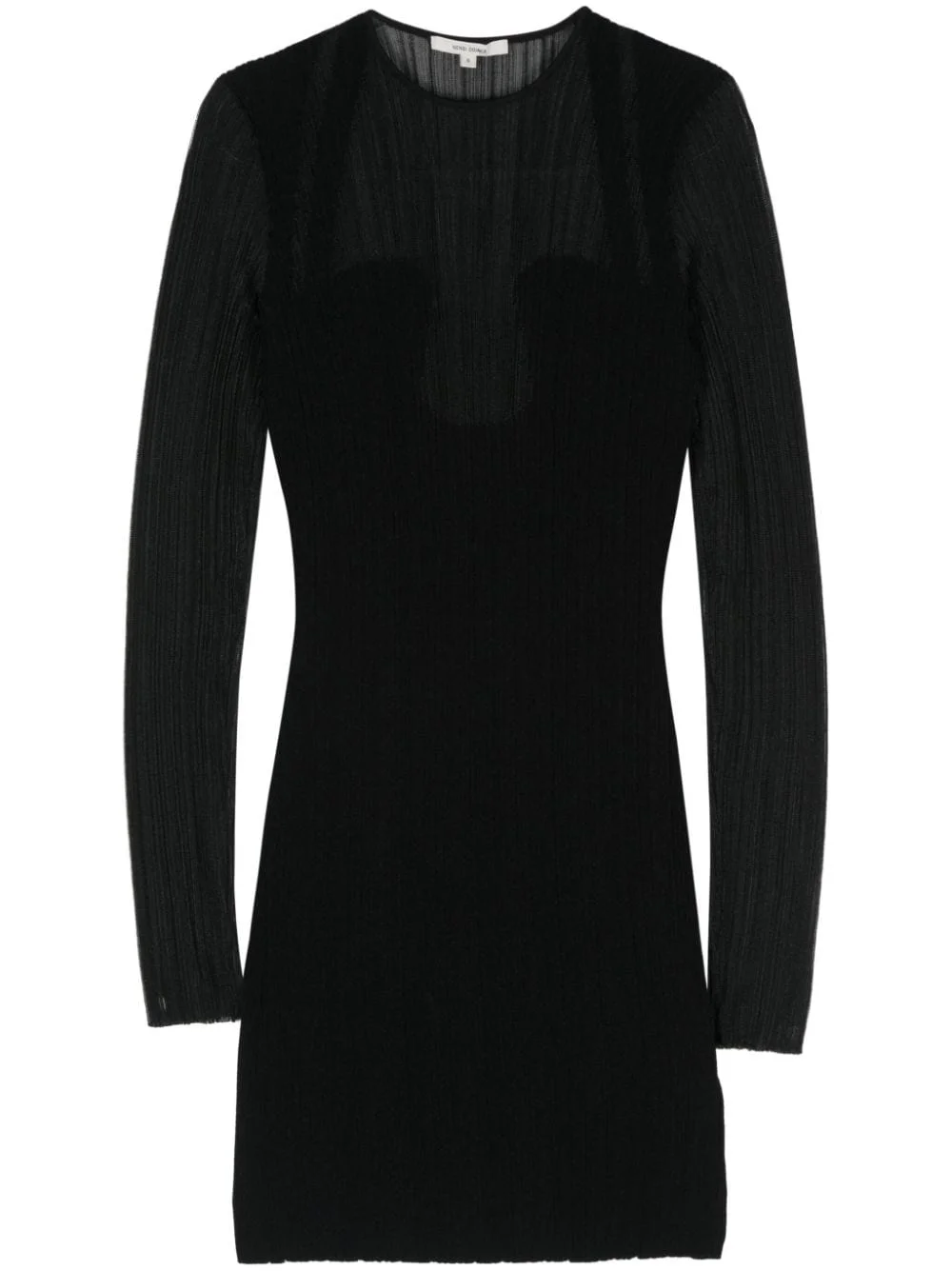 ribbed plisse mini dress Highlights - Black - Ribbed knit - Plisse effect - Semi-sheer panels - Round neck - Long sleeves - Thigh-length - Straight hem - Partial lining Made in Italy Composition Viscose 62%, Polyester 24%, Nylon 13%, Polyamide 1%